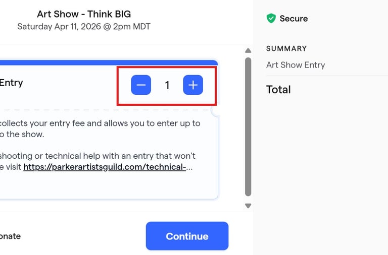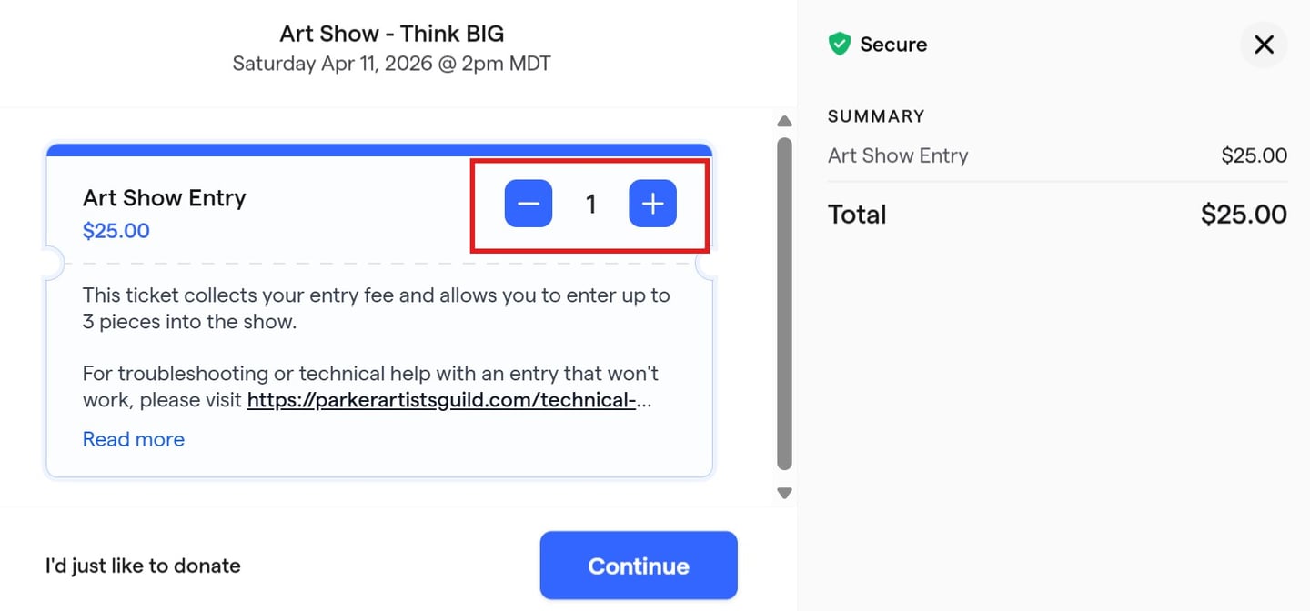 3. Choose 1 entry ticket. This will allow you to enter up to 3 pieces of artwork in the show.